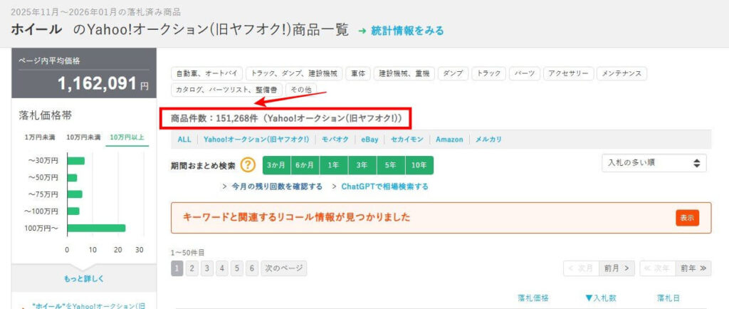 実際にヤフオクでタイヤ、ホイールは非常によく売れている商品のカテゴリーになります。